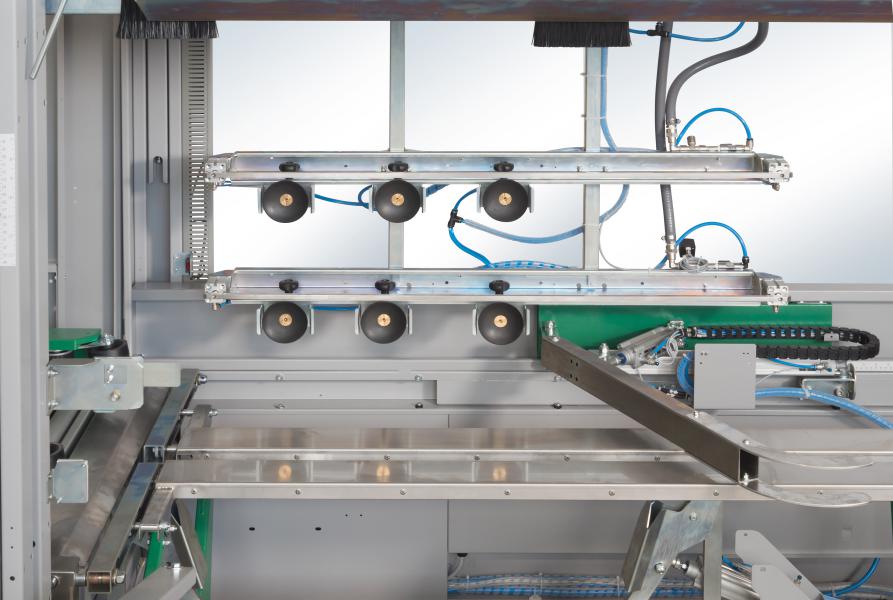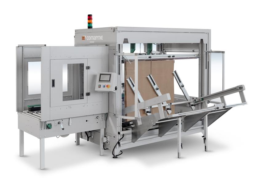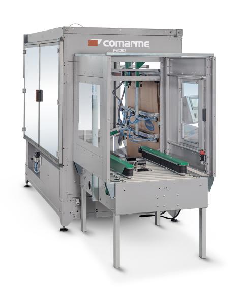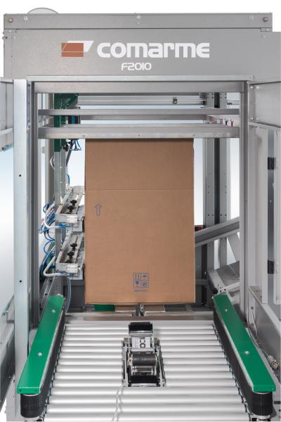 Le formeur de valise F2010 prépare les boîtes avec les 4 rabats inférieurs repliés, les sortant du magasin latéral (chargeur de boîtes). Les volets inférieurs sont fermés par du ruban adhésif et envoyés au point de remplissage. Ce formateur de carton installe des boîtes pliées parfaites, même en cas de cartons légers, grâce à la particularité de ce dispositif de pliage conçu par machine. Toute interférence entre les rabats lors du pliage est complètement éliminée. Les dimensions compactes permettent à la machine d'être incorporée dans des lignes existantes ou installée dans un espace limité.