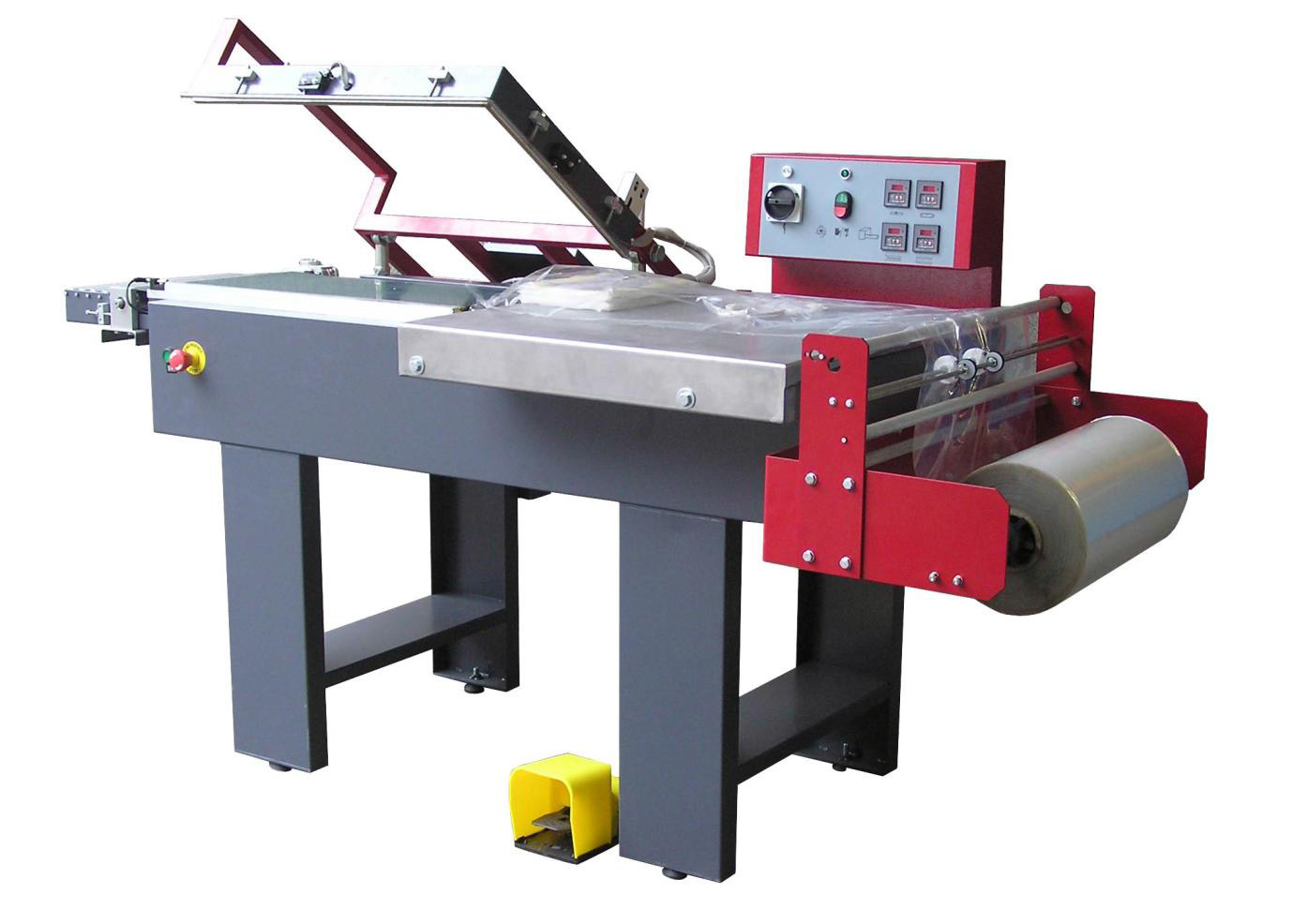 • Table d’introduction réglable en profondeur, selon la dimension du produit, avec écarteur de film.